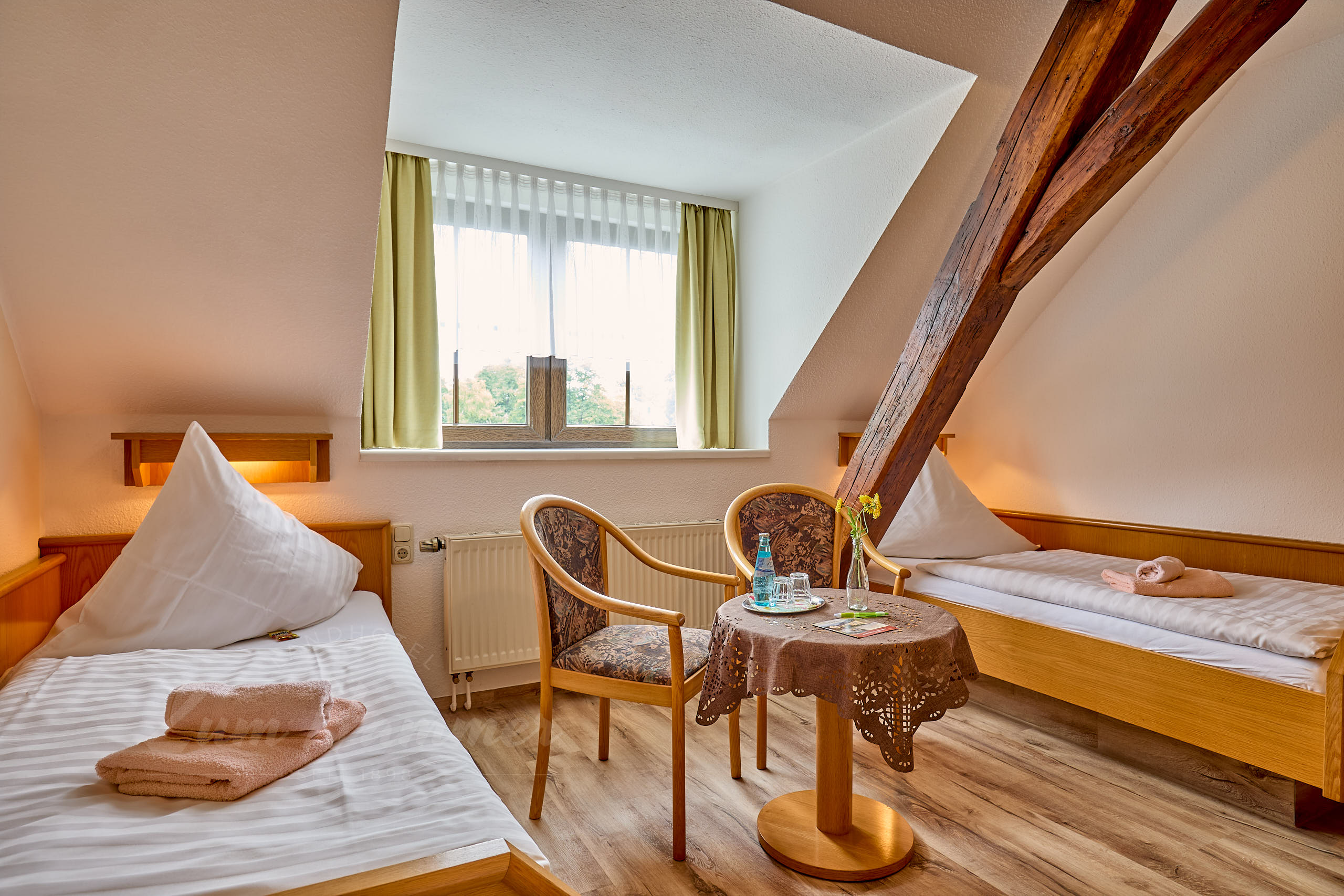 Genau das Richtige für einen Urlaub mit Freunden, für Einzelreisende oder Getrenntschläfer sind unsere Zweibettzimmer. Hier gibt es zwei Einzelbetten, eine Sitzgarnitur mit Tisch, kostenfreies Internet, ein Bad mit Dusche, WC und Fön.